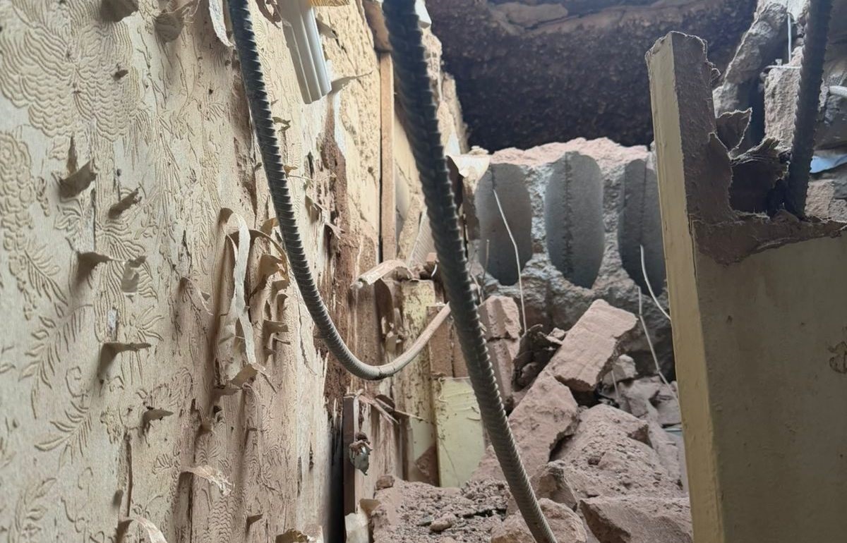 Повідомляється також, що внаслідок прямого влучання у багатоповерхівку зруйновано квартиру на верхньому поверсі, пошкоджено й сусідні квартири.